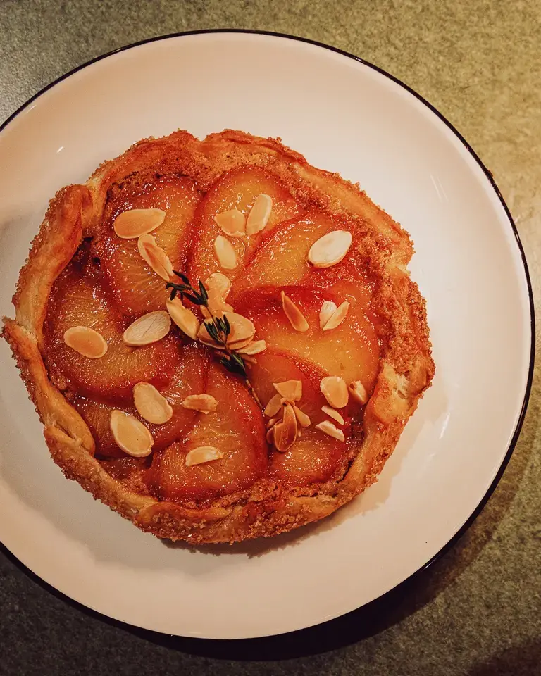 The peach crostata, which can also be baked ahead, “is an easy alternative to a traditional pie,” says Psaltis, noting that this Italian tart is meant to be imperfectly shaped but still flavorful. With the appetizer and dessert covered, the only tasks while guests are over are firing up the grill for lamb and opening a bottle of sparkling dry rosé made in the méthode champenoise. “At Andros Taverna, we serve Zafeirakis Prologue sparkling rosé, a 50/50 blend of Assyrtiko and Limniona from Thessalia in Central Greece,” he says. “It’s perfect for quality time with my friends and just hanging out by the grill.”