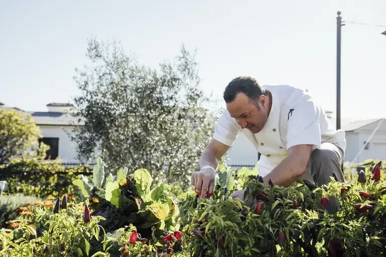 A native of Rome, Falsini built his career in some of the Italian capital’s most acclaimed fine-dining restaurants, opened a Ferrari theme park and luxury hotel in Abu Dhabi, and led a Michelin-starred kitchen in Napa Valley before joining Rosewood in 2018. Two years later, he took up beekeeping as a hobby—one that now supplies the resort’s kitchens and inspires a honey-harvesting guest experience.