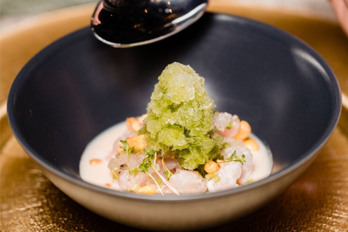Sea bass ceviche with coconut sauce and jalapeño granita by Gabriela Ghamorro