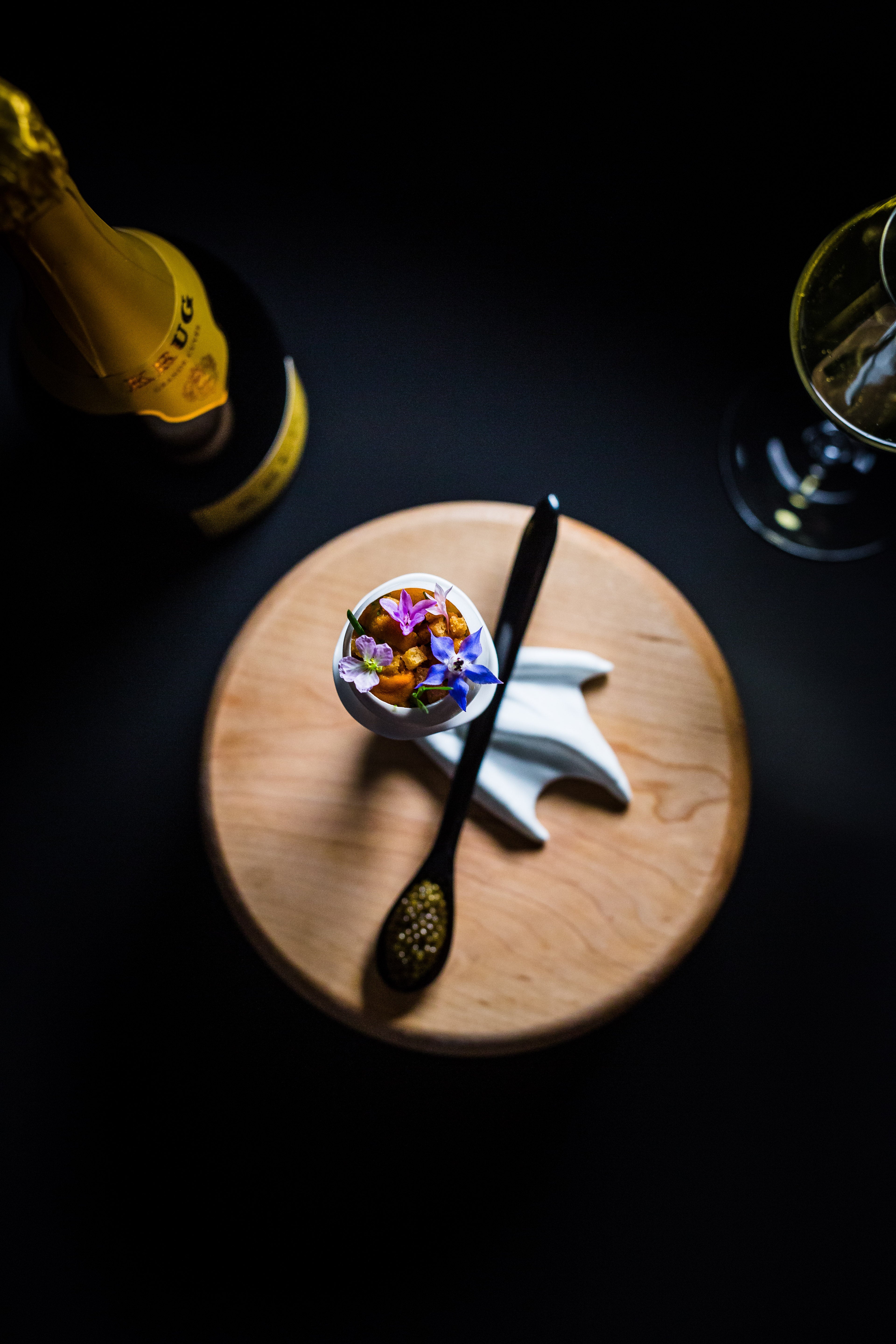 - Top with brioche croutons and a few fines herbes and edible flowers, if using.