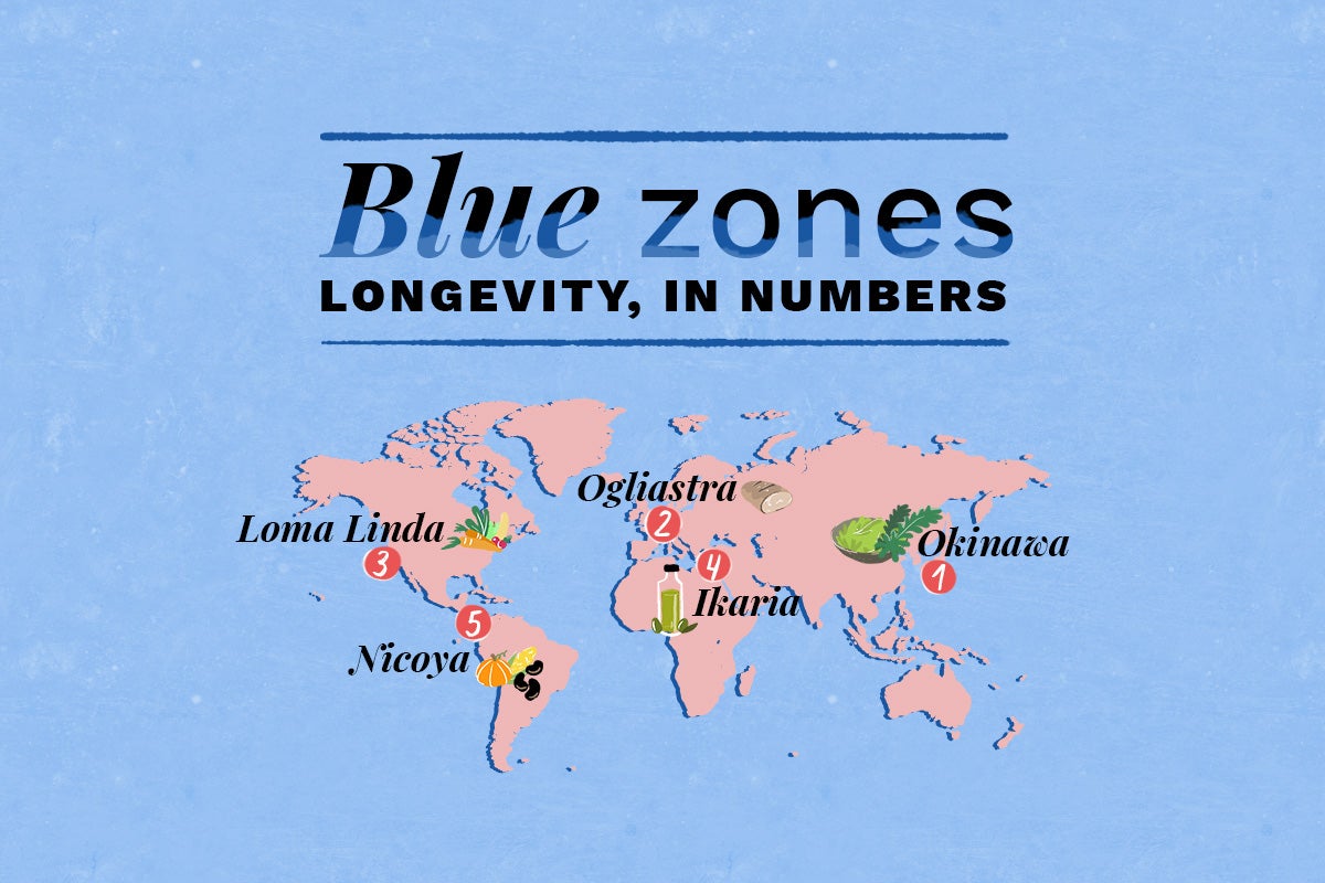 The five famous blue zones are Ikaria, Greece; Okinawa, Japan; the Ogliastra region, Sardinia; Loma Linda, California; and the Nicoya Peninsula, Costa Rica. These regions have attracted worldwide attention because the populations have an unusually high longevity, and people live longer and happier lives. The scientific community has been trying to ascertain why these people live so long; influential factors include genetic profile, community, religion, pollution, climate etc.